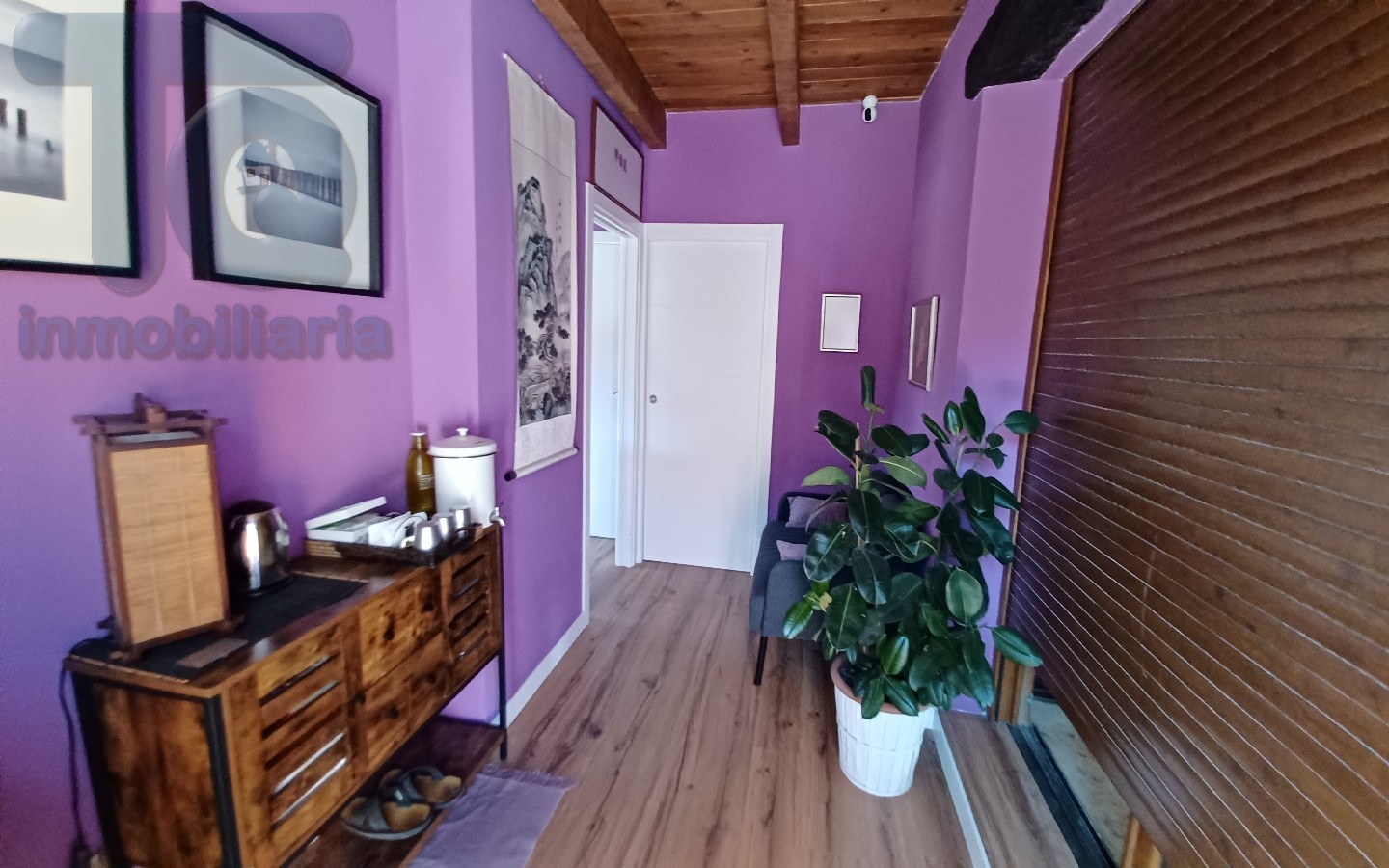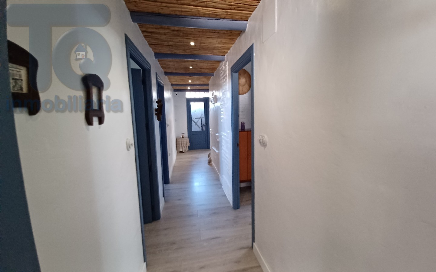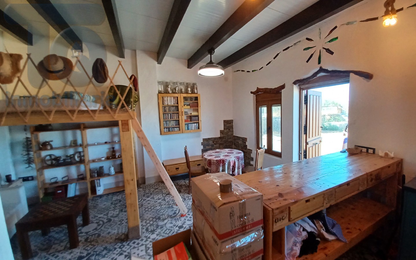 La vivienda principal consta de 150 m². En planta baja, amplio salón con cocina office integrada, estufa de pellet y chimenea, tres dormitorios , uno de ellos con vestidor y un baño. en la planta alta que accedemos mediante una rampa encontramos dos estancias, una de 30 m² como lugar de trabajo con aseo y otra diafana de 100 m² con terraza para personalizar a su gusto.