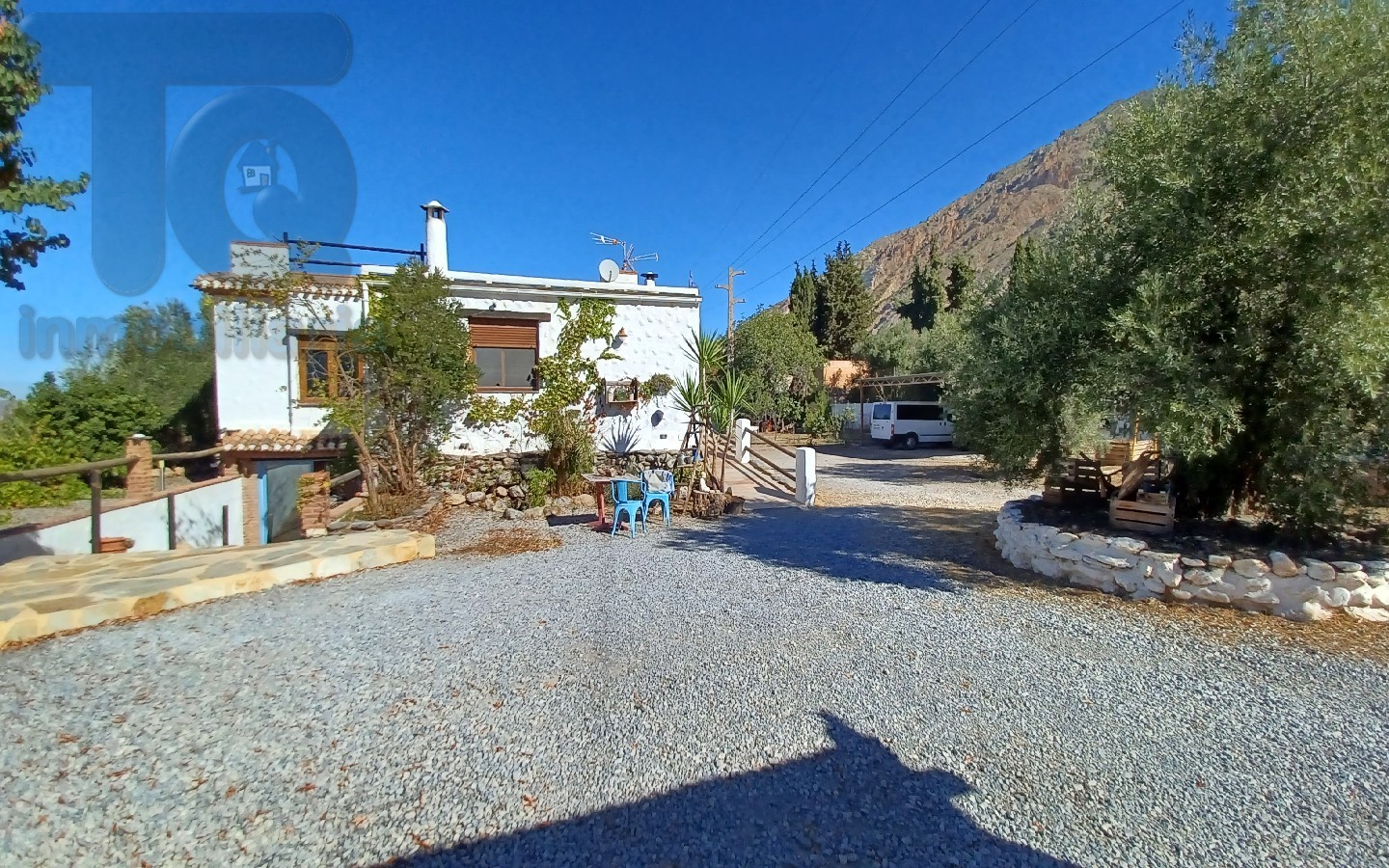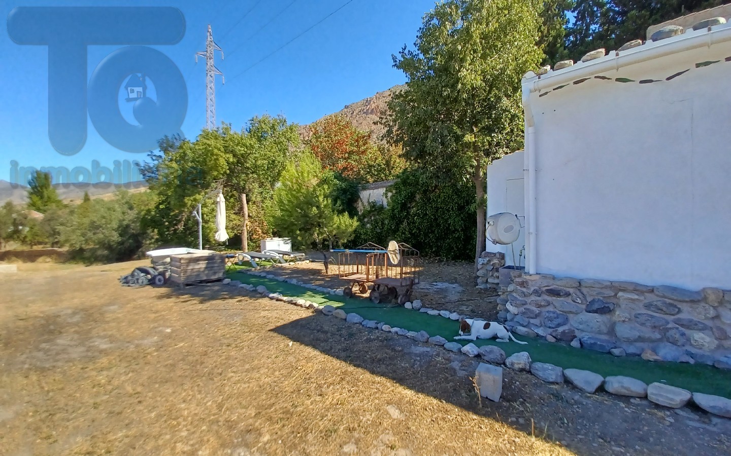 Posee gran terreno de 5.271 m², parking techado, porche con barbacoa, cocina exterior, pozo propio para riego y placas solares para autoabastecimiento.